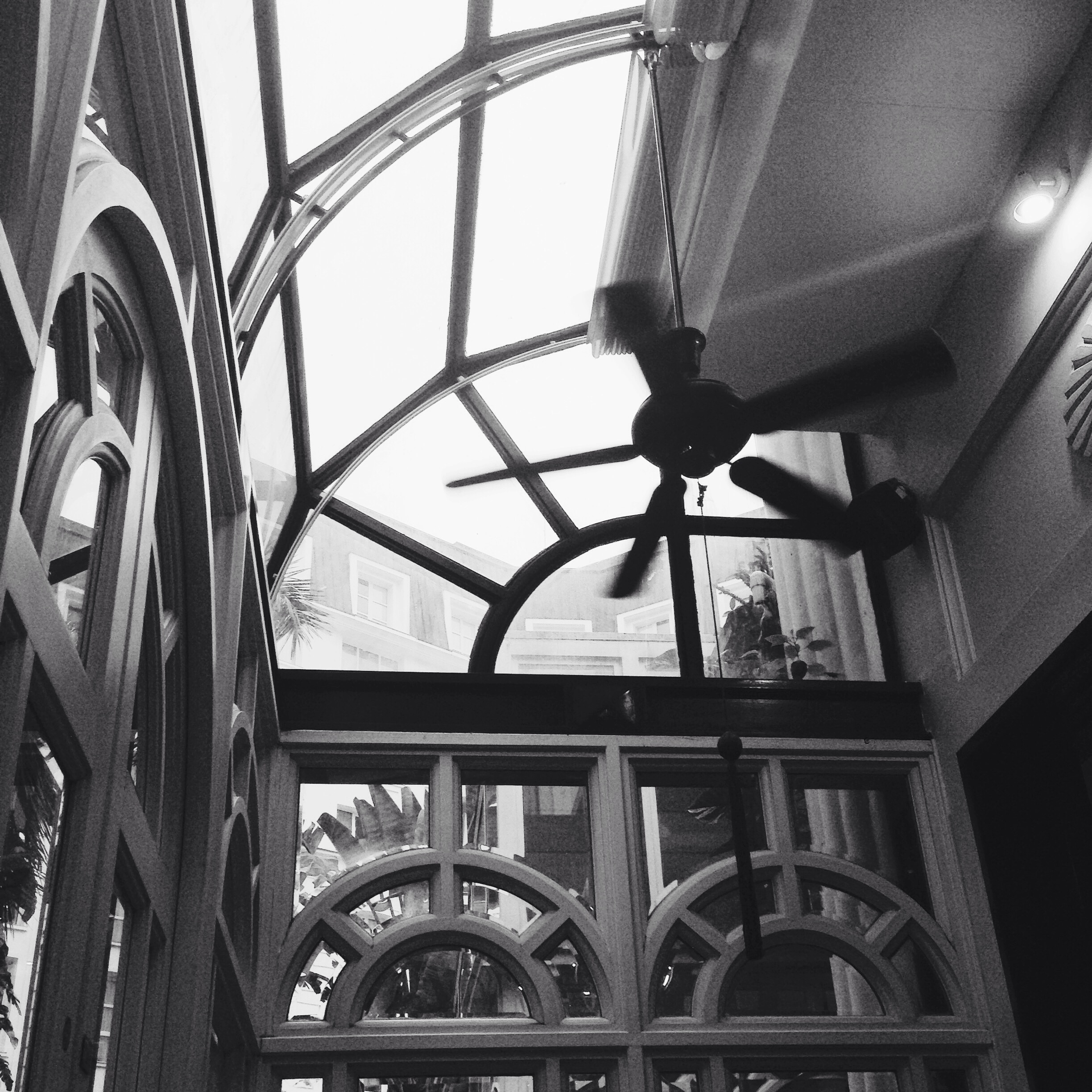 Không gian của quán đúng như những gì chúng ta tưởng tượng về kiến trúc pháp cổ kính, mái vòm, nội thất như bàn ghế, quạt trần cũng mang đậm phong cách Pháp. Quán khá đông, nhân viên chạy đi chạy lại như con thoi mà không ngơi tay, ghi ghi chép chép, nhận order. Phải khá vất vả tôi mới gọi được nhân viên, lướt qua menu thấy đồ uống khá đắt, tất nhiên rồi, khách sạn 5 sao mà, lại còn hơn 100 năm lịch sử, ok, tôi gọi cappuccino như thường lệ.