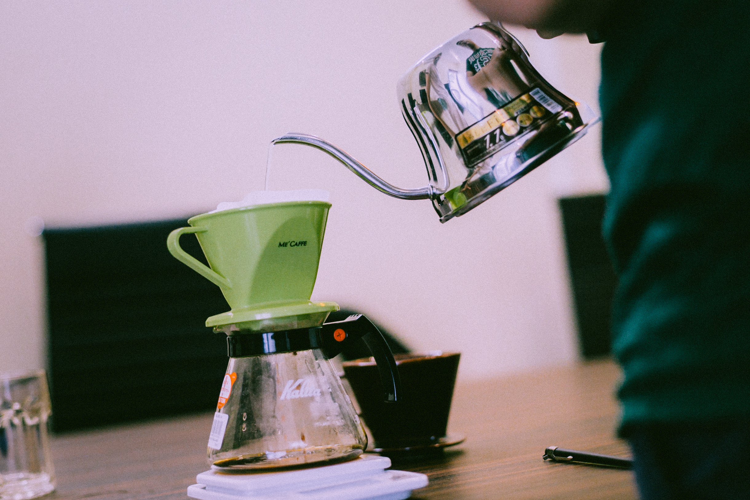 Quay trở lại với pour over cũng không hề đơn giản vì mọi người chưa quen, dụng cụ thiếu thốn, tất cả mọi người nhất trí “order” một bộ dụng cụ từ Amazon Nhật Bản về Việt Nam để qui trình pha chế được chuẩn hoá. Cho đến hôm nay, chúng tôi đã có đẩy đủ mọi thứ như: