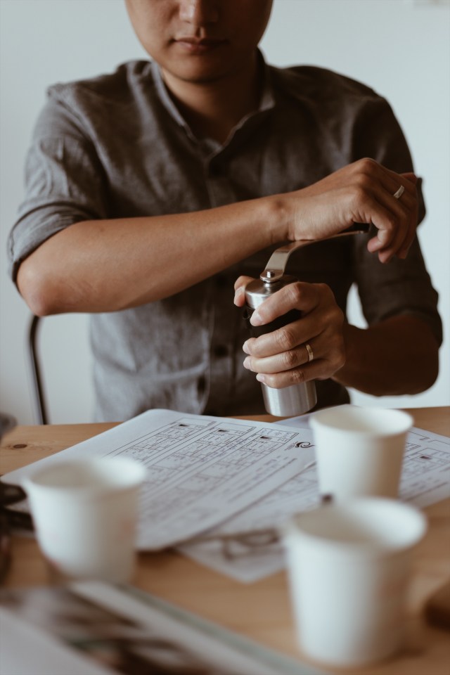 - Kiểm tra hương thơm của cà phê khi đang xay trong cối. (grinder)