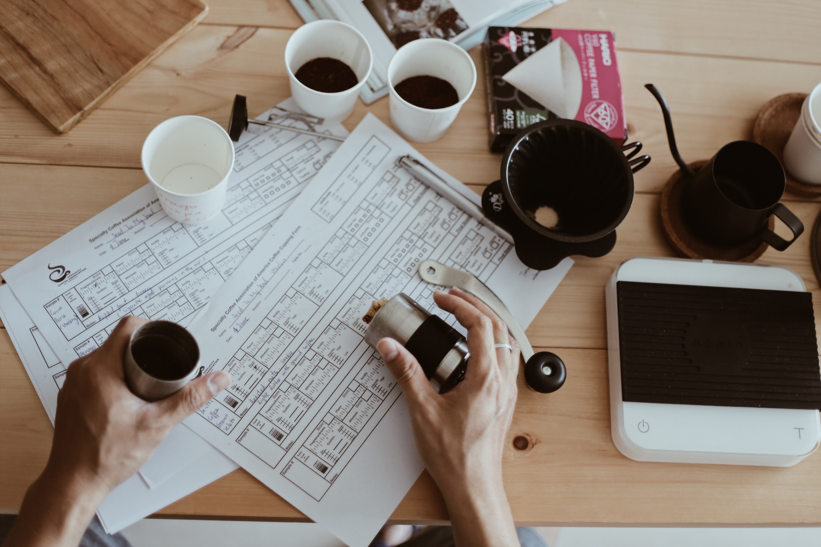 Khác với các lần trước khi chúng tôi chỉ sử dụng form cupping cơ bản (theo hướng dẫn trong sách Joe the coffee book), lần này để ôn lại kiến thức cho bài bản, tôi quyết định dùng SCA form (hay còn gọi là SCAA cupping form). Nói là làm, trước khi về nghỉ cuối tuần, tôi in 1 tập form mẫu tại văn phòng rồi chuẩn bị giấy bút, các taste notes của nhà sản xuất cà phê (notes from roasters) cũng như các dụng cụ cần thiết cho ngày cuối tuần.