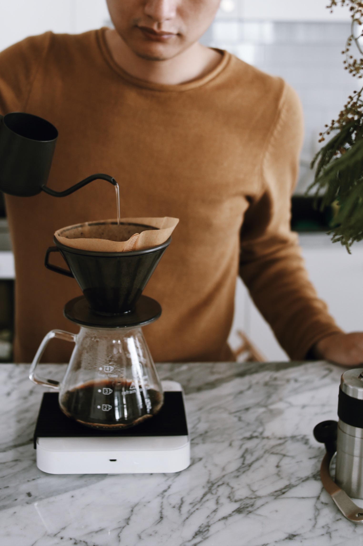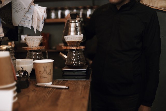 Pha chế V60 ở Mel coffee roaster. Ảnh Justiamo.