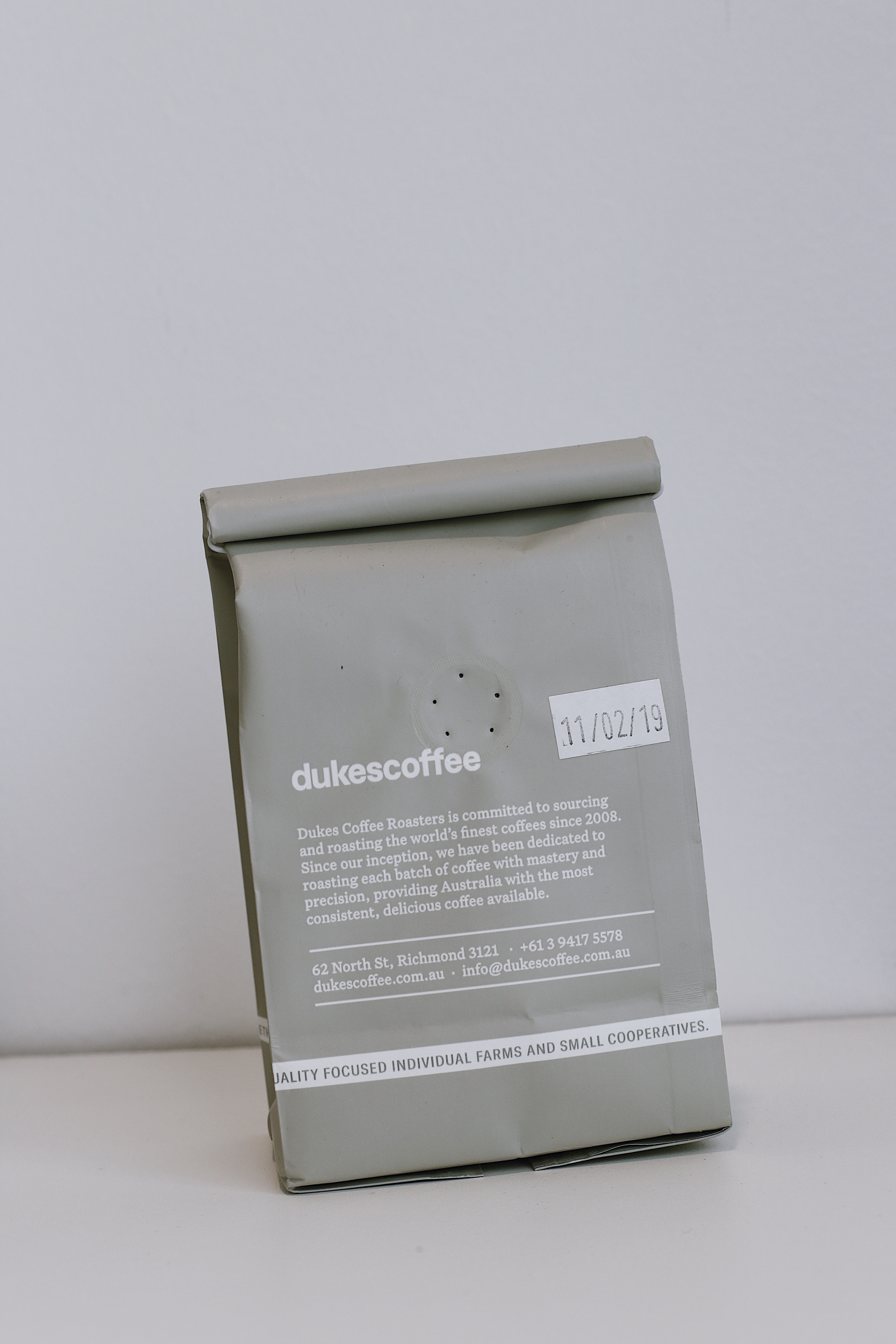 Gói cà phê của Duke roastery, Australia với đầy đủ thông tin. Ảnh: Justiamo