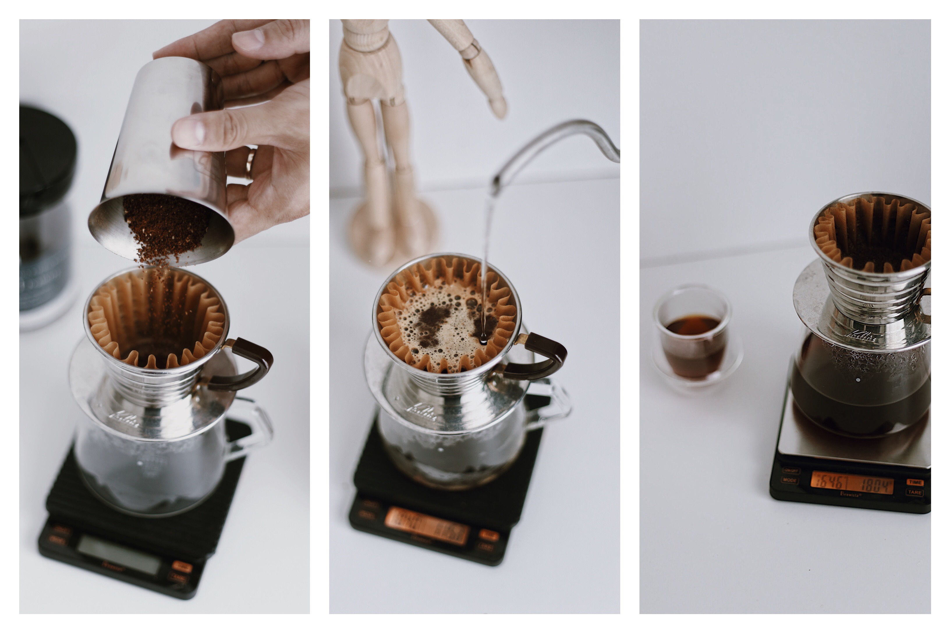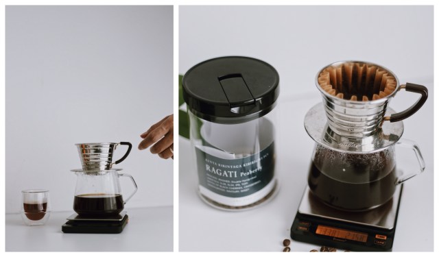 Pha chế hạt cà phê peaberry với kalita wave 2 cups. Ảnh: Justiamo