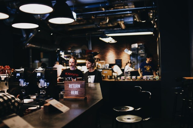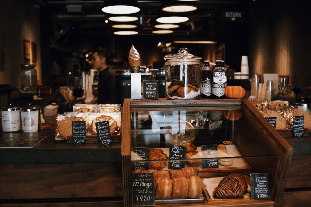 Quán thuộc dạng nhà ống nên không có nhiều ánh sáng. Cách thiết kế cũng sử dụng những bóng đèn vàng với cường độ sáng vừa phải nên nhìn từ bên ngoài vào, quán có tone màu trầm rất đặc trưng của Nhật Bản. Nếu chỉ nhìn nhanh vào khu vực barista, bạn sẽ thấy phảng phất phong cách cà phê châu Âu, Mỹ đó là… rất nhiều thứ như bánh qui, nước đóng chai, biểu tượng ice cream, và các loại bánh phong phú khác.