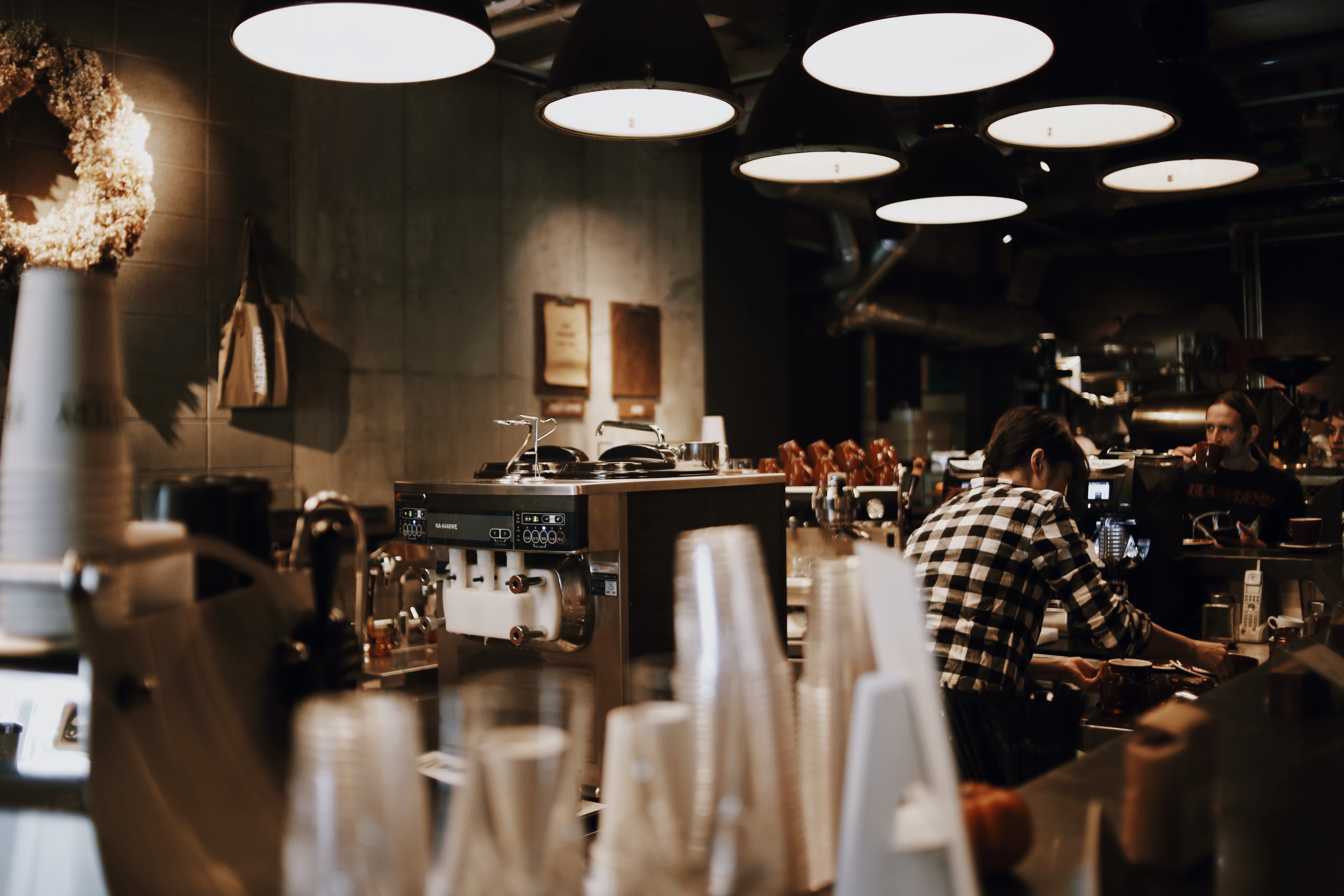 Quán thuộc dạng nhà ống nên không có nhiều ánh sáng. Cách thiết kế cũng sử dụng những bóng đèn vàng với cường độ sáng vừa phải nên nhìn từ bên ngoài vào, quán có tone màu trầm rất đặc trưng của Nhật Bản. Nếu chỉ nhìn nhanh vào khu vực barista, bạn sẽ thấy phảng phất phong cách cà phê châu Âu, Mỹ đó là… rất nhiều thứ như bánh qui, nước đóng chai, biểu tượng ice cream, và các loại bánh phong phú khác.