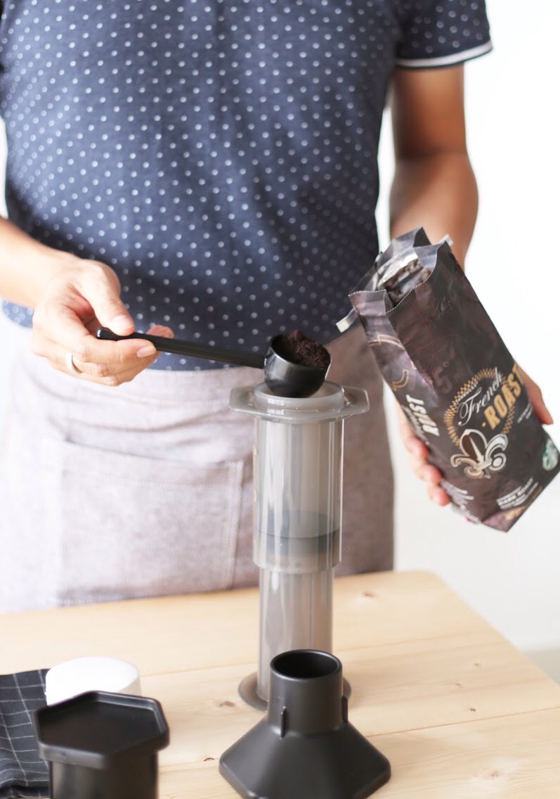 Aeropress với vài lát chanh vàng.