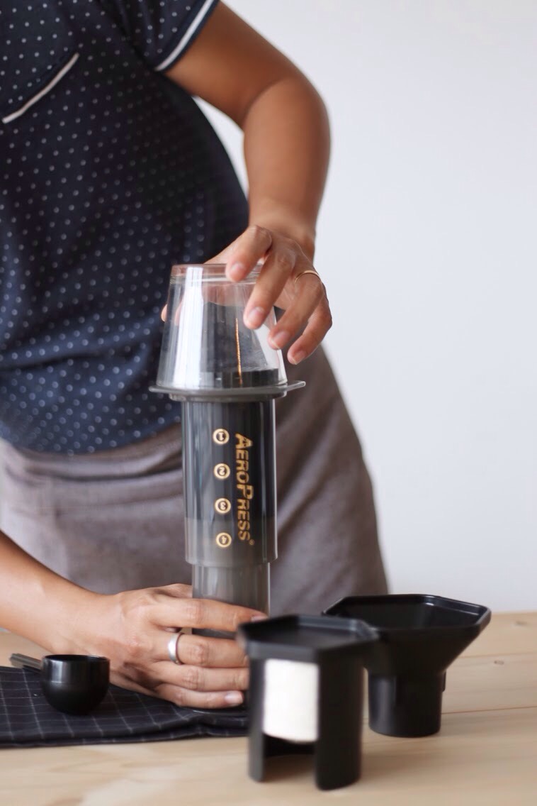 Aeropress với vài lát chanh vàng.